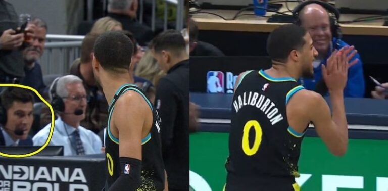 “等不及这一刻”:在步行者队对阵尼克斯队的比赛中,泰瑞斯·哈利伯顿 (Tyrese Haliburton) 盯着沃利·斯泽比亚克 (Wally Szczerbiak),NBA 球迷疯狂了